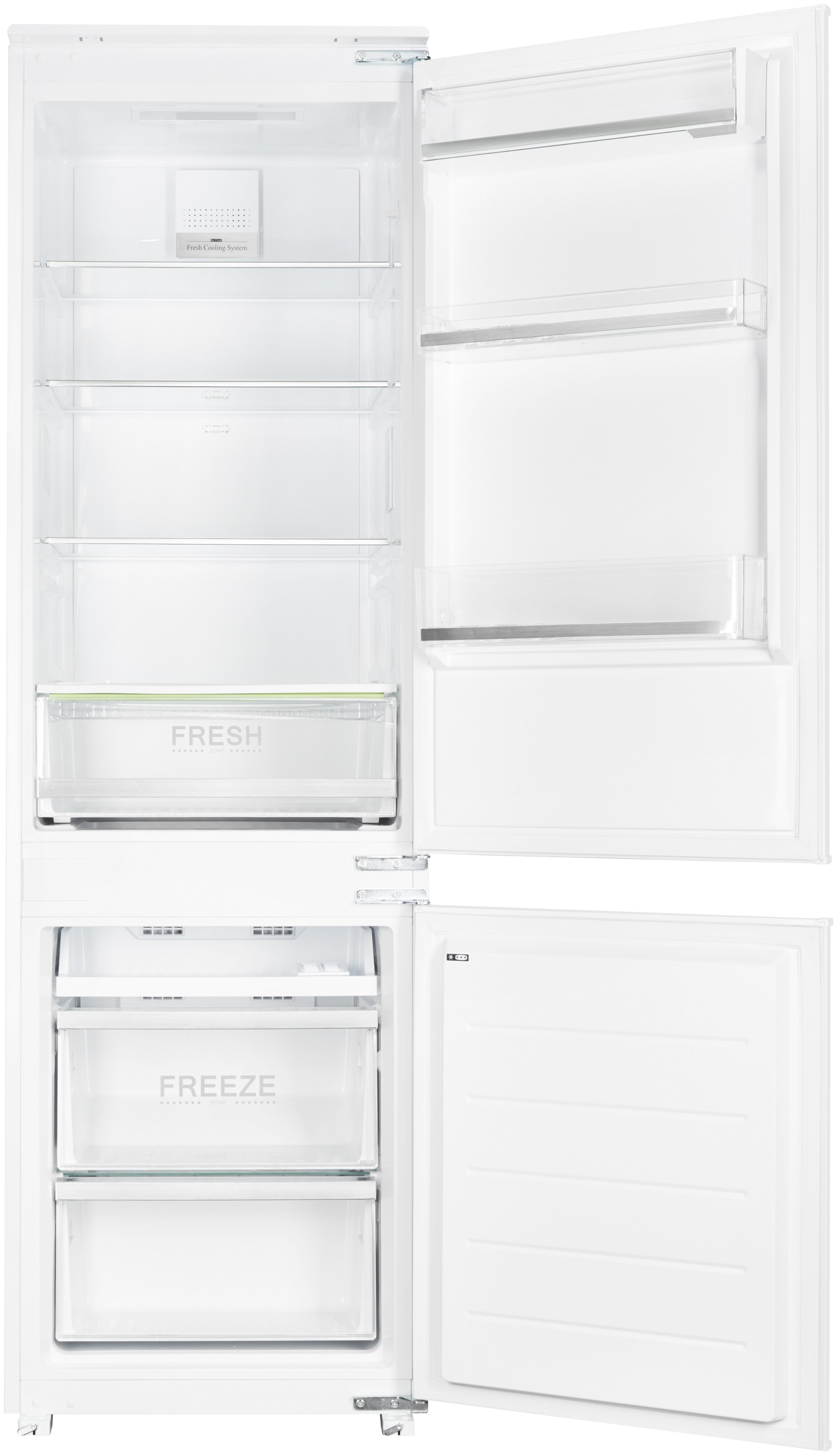 Дополнительная информация4 полки, полка для яиц, полка для овощей, 3 полки на двери, светодиодное освещение камеры; 2 ящика для продуктов морозильной камеры; размер ниши для встраивания (ШхВхГ), мм: 560×1785(+10)х560(+10); мощность подключения 180 Вт