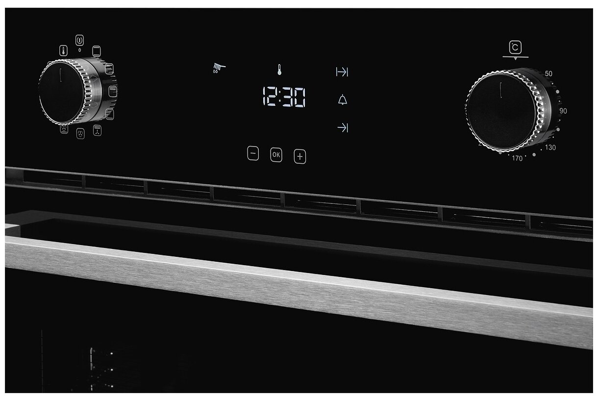 | Дополнительная информация | макси-гриль, турбо режим, макси-гриль с конвекцией; сенсорный, мультифункциональный таймер; тип часов: электронные; вентилятор охлаждения, режим очистки, коллекция Hi-Tech, цвет фурнитуры чёрно-серебристый, направляющие для противней хромированные, съемные; съемная дверца духового шкафа, съемное внутреннее стекло; размер ниши для встраивания в колонну (ВхШхГ), мм 590×560×580; размер ниши для встраивания под столешницу (ВхШхГ), мм 600×560×580; доводчик двери; |