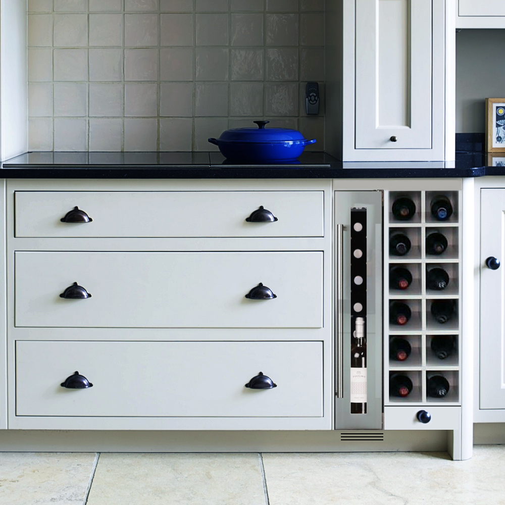 Специальное покрытие защищает вино от влияния ультрафиолетовых лучей, которые проникают, если шкаф находится в солнечной комнате. Хранение становится еще безопаснее и герметичнее благодаря нескольким слоям стекол. Цвет корпуса — черный. Дверь можно перевесить на другую сторону, поэтому вариантов размещения его в доме становится больше.
