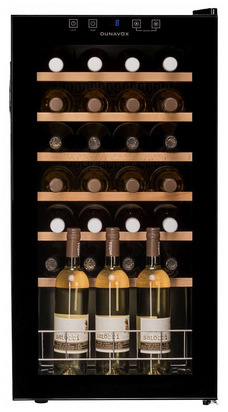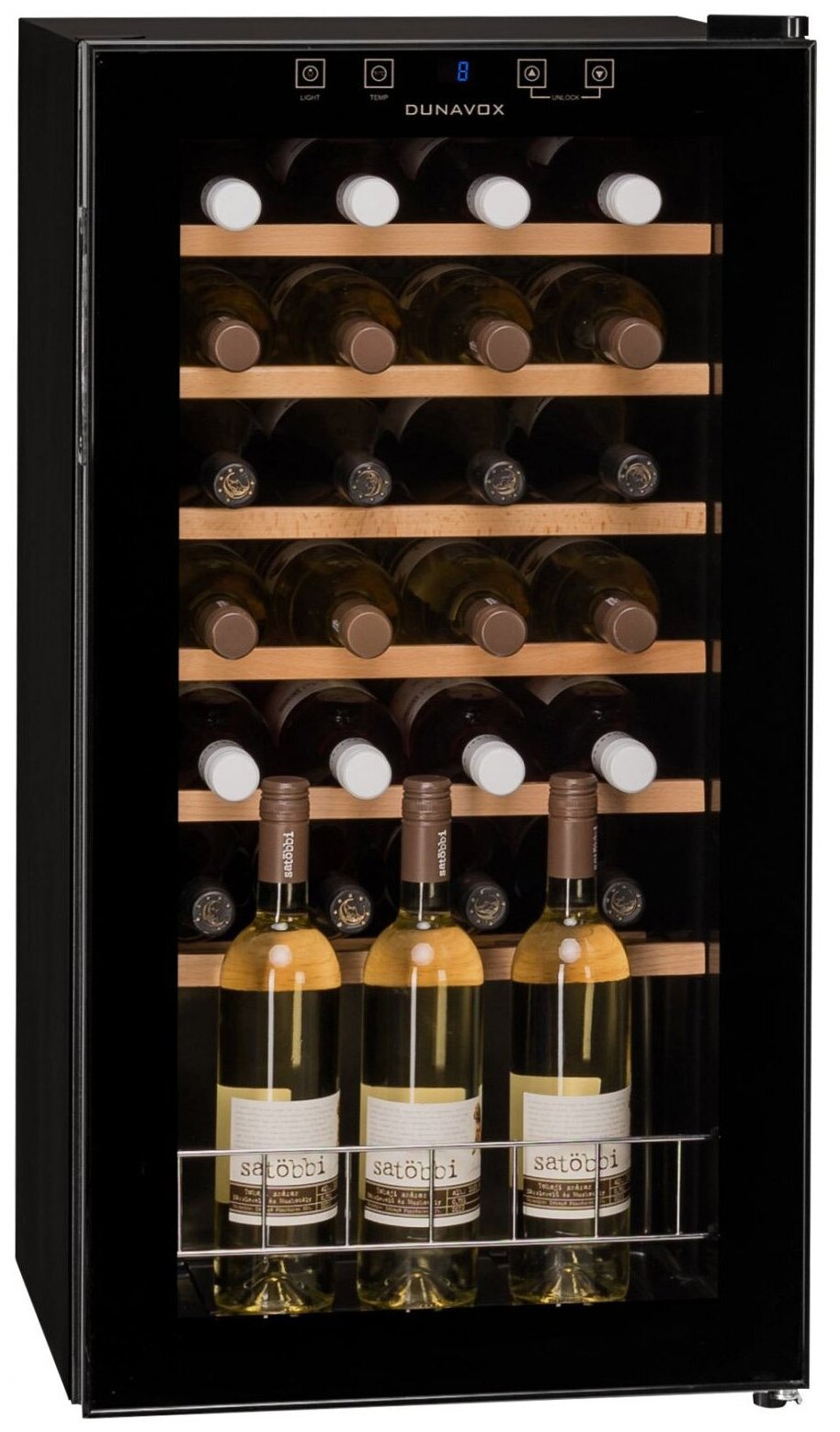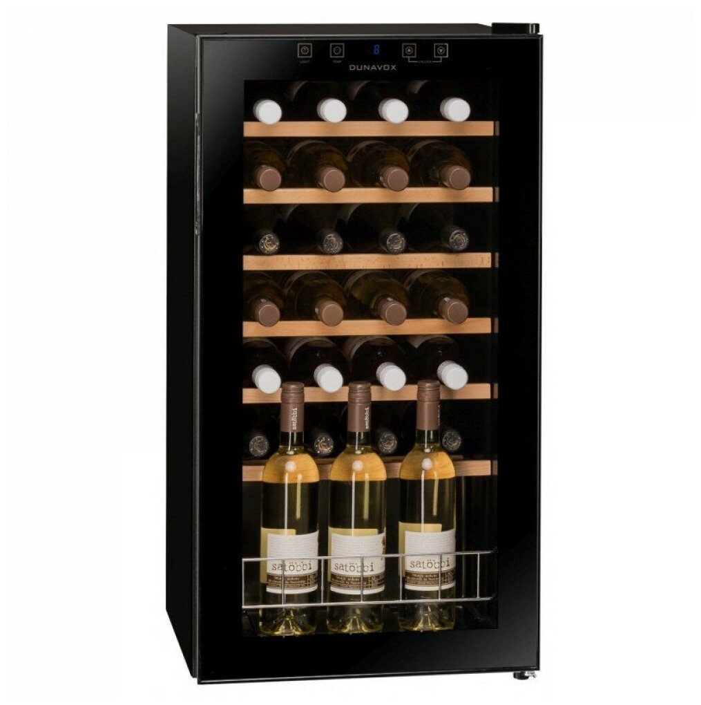 Винный холодильник Dunavox DXFH-28.88 имеет одну температурную зону, в которой можно разместить бутылки и единовременно выставить только одну комбинацию настроек. Он устанавливается отдельно, что удобно, если у вас есть специальное помещение — кладовая, погреб и т.д. Благодаря компактным размерам данная модель — отличный выбор для офиса, гостиничного номера. Количество бутылок, которое можно разместить с учетом полной комплектации и из расчета объема бутылки 0,75 л, — 28 шт.