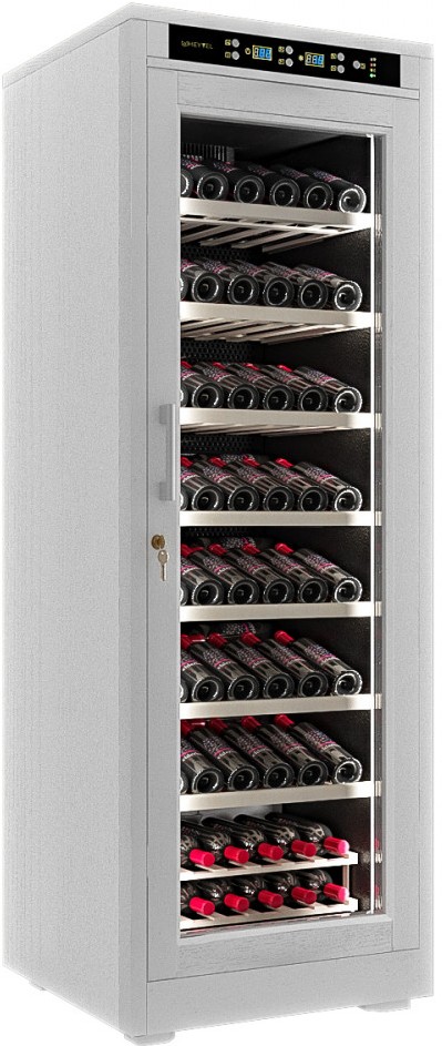 Изысканный дизайн модели делает ее абсолютным выбором большинства: MV108-WW1-M оснащен деревянным коробом из Американского дуба в белом цвете, благодаря чему винный шкаф становится оптимальным вариантом, подходящим для установки в любом дизайнерском интерьере. Отличительная особенность MV108-WW1-M заключается в том, что данная модель является самой вместительной среди всех представителей шкафов данной линейки: внутреннее пространство рассчитано на хранение до 108 бутылок типа Бордо (0,75 л). Габариты модели позволяют разместить ее максимально функциональной в любой зоне: кухне, столовой, гостиной.