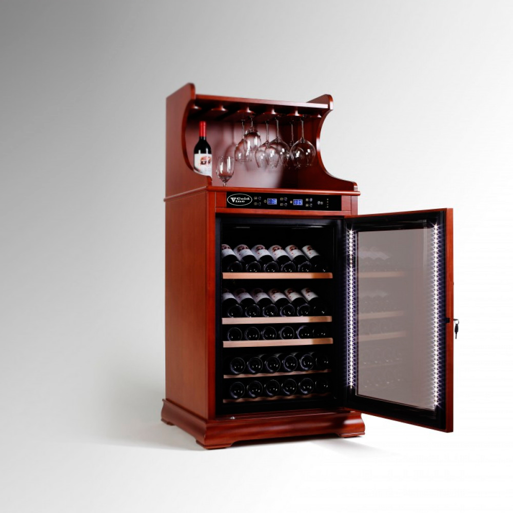 Винный холодильник Cold Vine C46-WM1-BAR1.4 (Classic) имеет одну температурную зону, в которой можно разместить бутылки и единовременно выставить только одну комбинацию настроек. Он устанавливается отдельно, что удобно, если у вас есть специальное помещение — кладовая, погреб и т.д. Количество бутылок, которое можно разместить с учетом полной комплектации и из расчета объема бутылки 0,75 л, — 46 шт.