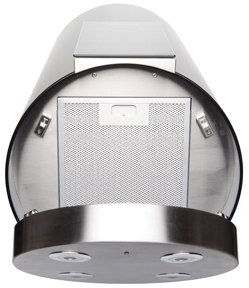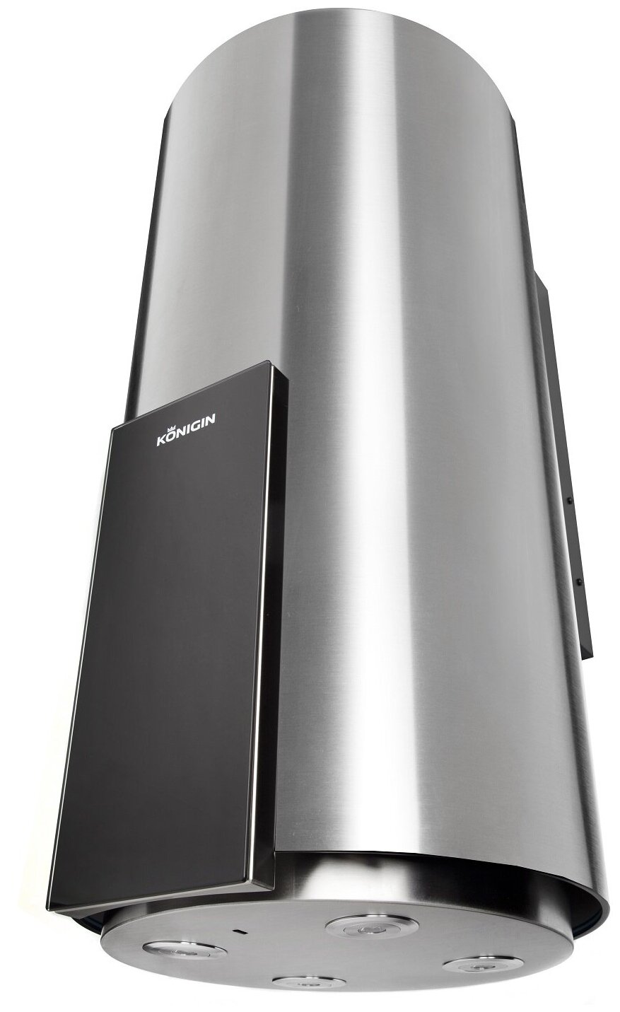 Кухонная вытяжка Konigin Equilibrium W Steel Glass 101008 - стильное сочетание цилиндрического корпуса с прямоугольной панелью управления и круглой декоративной панелью освещения.