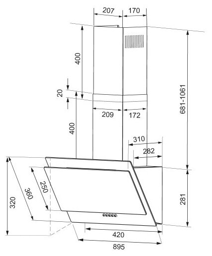KRONA VENERA 900 black PB - наклонная вытяжка шириной 90 см черного цвета, выполненная из стекла. Модель оснащена светодиодной подсветкой и надежным кнопочным управлением. Благодаря технология периметрального всасывания увеличивается объем всасывания воздуха, срок работы мотора и уменьшается уровень шума при работе. Модель отлично подойдет для кухонь площадью до 13 кв.м.