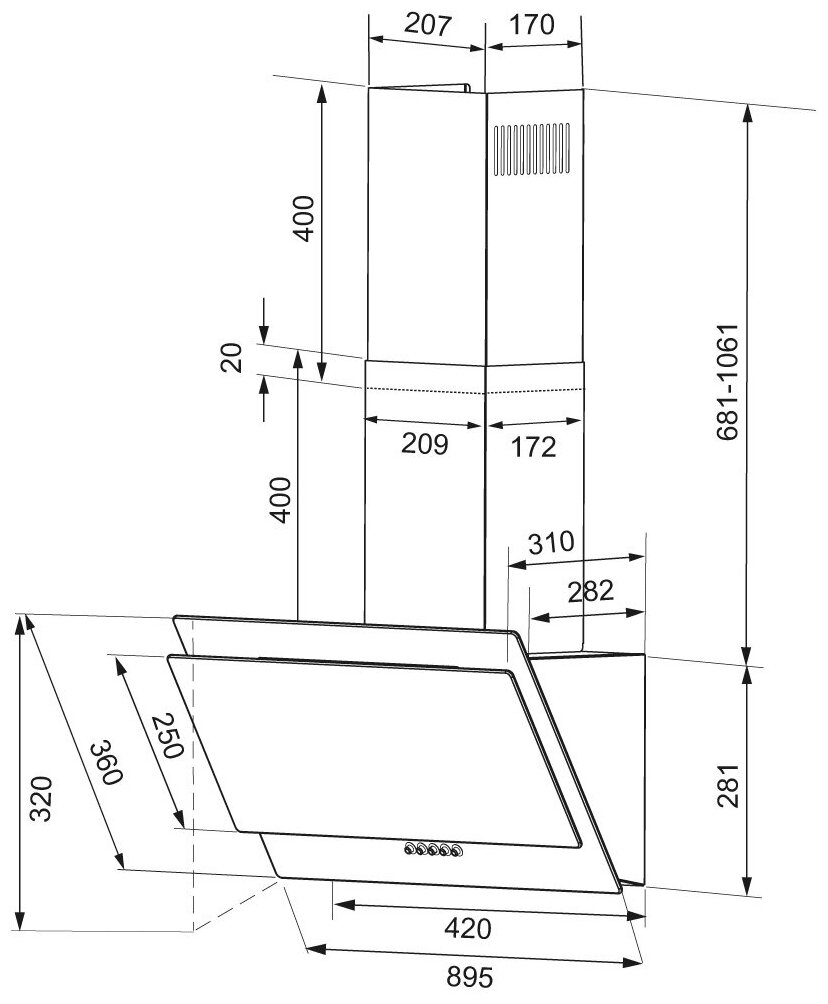 Благодаря своим габаритам модели увеличивается площадь поглощения испарений, что, в свою очередь, повышает качество защиты фасадов кухонного гарнитура от нагрева.