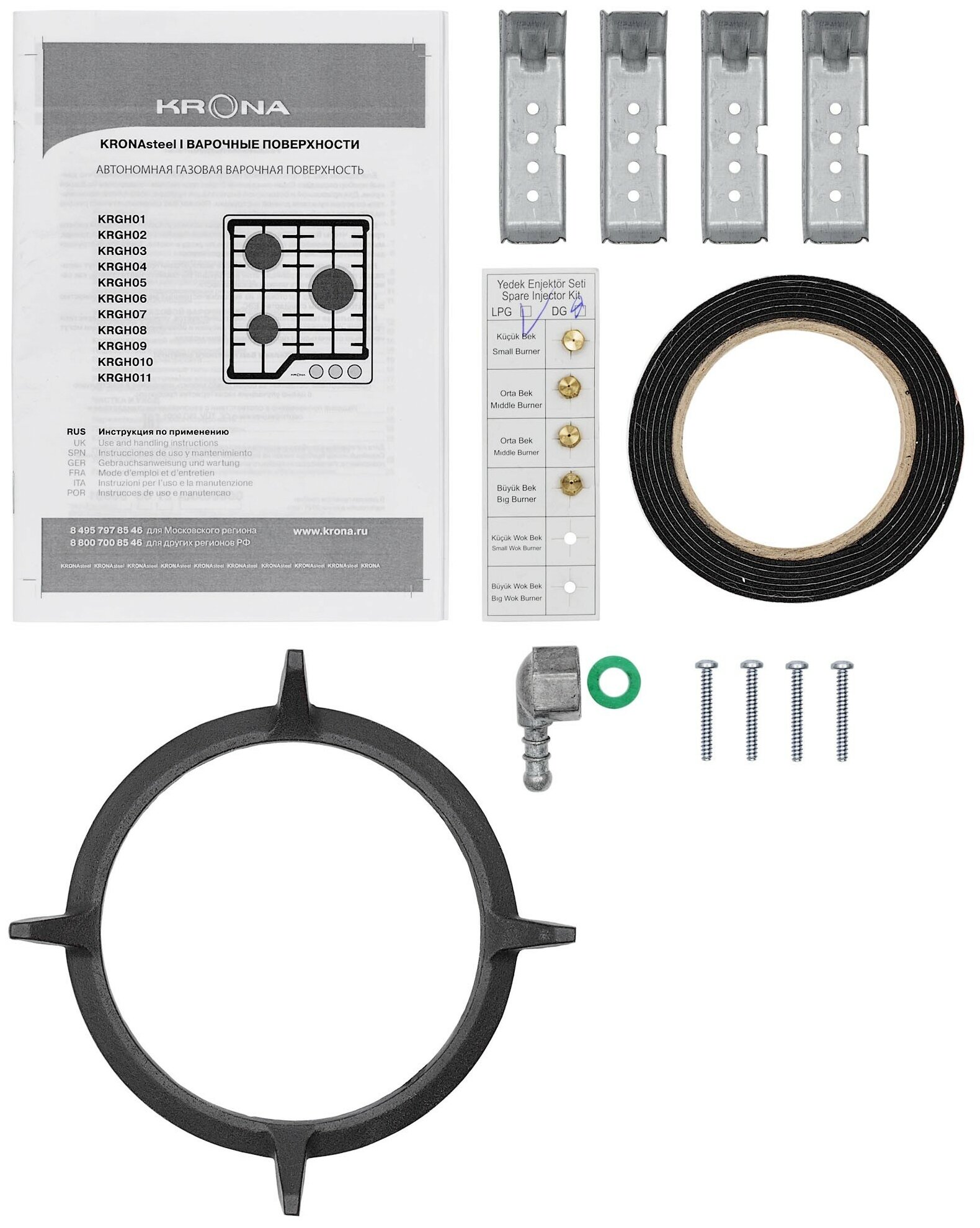 Krona ARDENTE 60 BL - газовая варочная поверхность шириной 60 см, выполненная из прочного закаленного стекла. Производитель оборудовал варку экспресс-конфоркой с тройным уровнем пламени, газ-контролем и автоматическим электроподжигом. В комплектации вы найдете 2 чугунные решетки, адаптер под посуду со сферическим дном, а также жиклеры для подключения модели к баллонному газу.