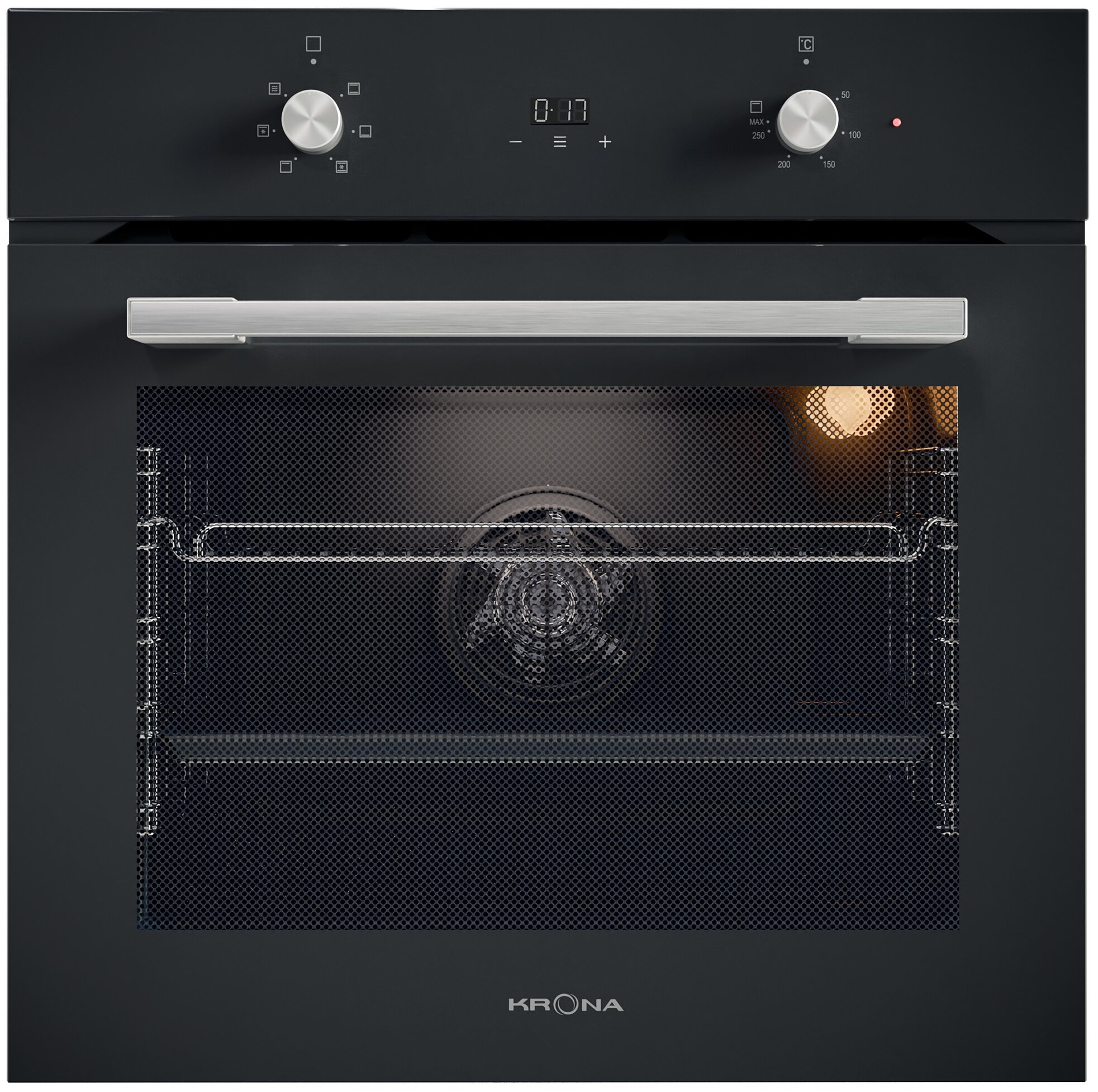 Дисплеи духовых шкафов KRONA не только наглядно показывают время суток, время отсрочки начала старта, символы активации того или иного режима и другую информацию, но и делают управление прибором максимально комфортным. Символьная и числовая информация на ярких цифровых дисплеях духовок KRONA четкая, легко читаемая, а выбор установок легко осуществляется с помощью сенсорных кнопок.