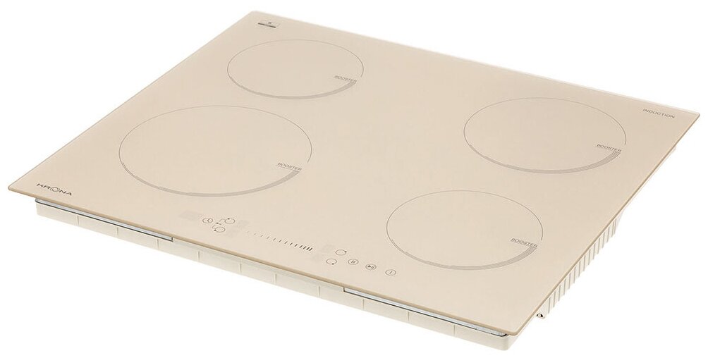 Основа индукционной варочной поверхности KRONA VENTO 60 IV B выполнена из японской стеклокерамики NEG в бежевом оттенке. Прибор имеет 4 конфорки диаметром 16, 18 и 21 см, каждая из которых дополнена опцией BOOSTER для выдачи максимальной мощности. За счет встроенного датчика он не включится, если вы забыли поставить кастрюлю на панель.