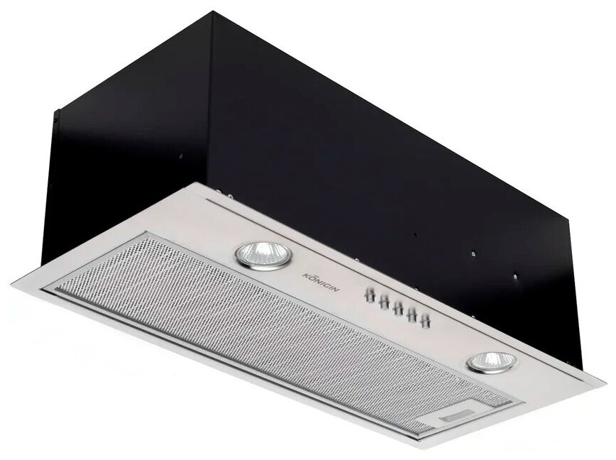 Кухонная вытяжка Konigin Flatbox Inox 50 102040 с тихим и производительным мотором. Корпус и фасад вытяжки выполнен из высококачественной нержавеющей стали.