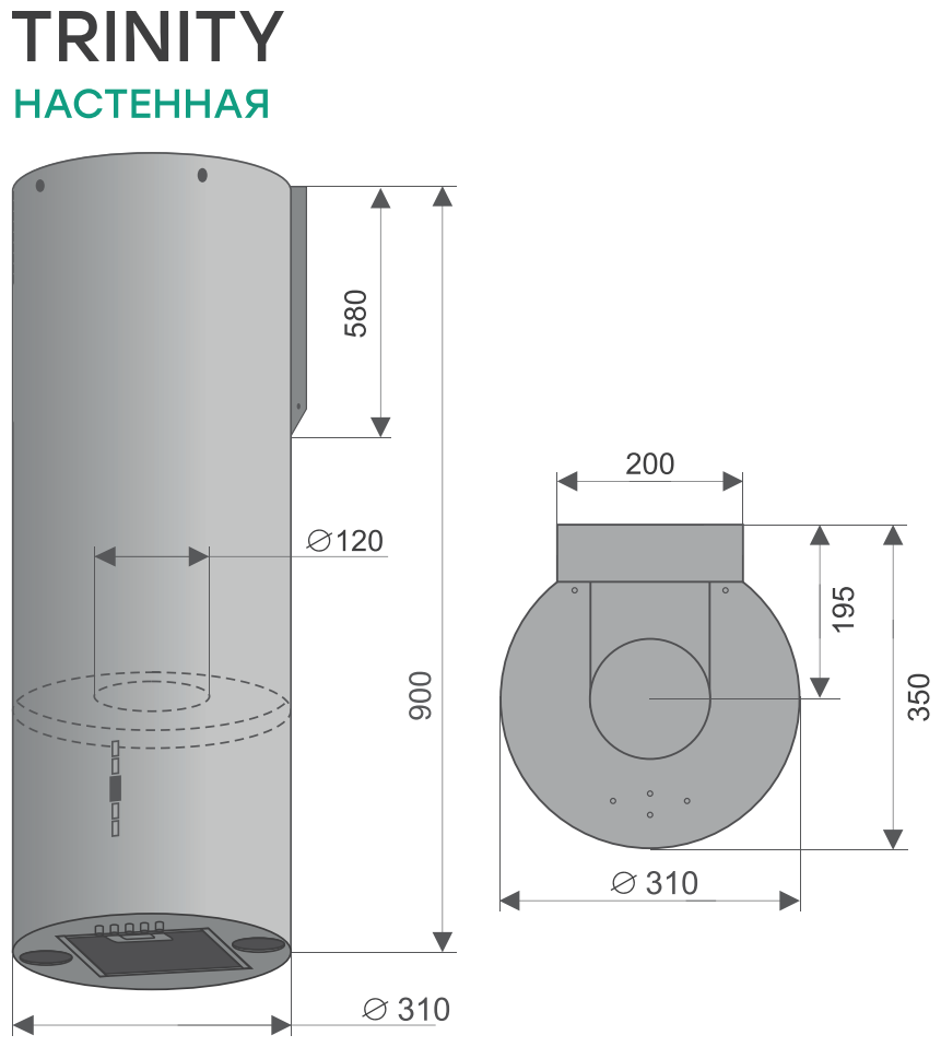 Кухонная вытяжка Konigin Trinity Inox 31 102057 выполнена в форме цилиндра. Удобная электронная панель Soft Touch (мягкое нажатие) с красной индикацией на цифровом табло делает управление простым и точным. Вытяжка состоит из одной части, имеет два выхода для воздуховода - вертикальный и горизонтальный. Антижировой алюминиевый фильтр не требует замены и подходит для мытья в посудомоечной машине.