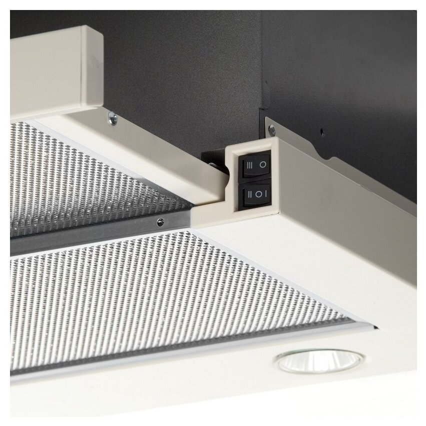 Полноразмерные алюминиевые жироулавливающие фильтры. Основной фильтр и фильтр на выдвижной панели одинакового размера, что гарантирует большую площадь поглощения загрязненного воздуха.