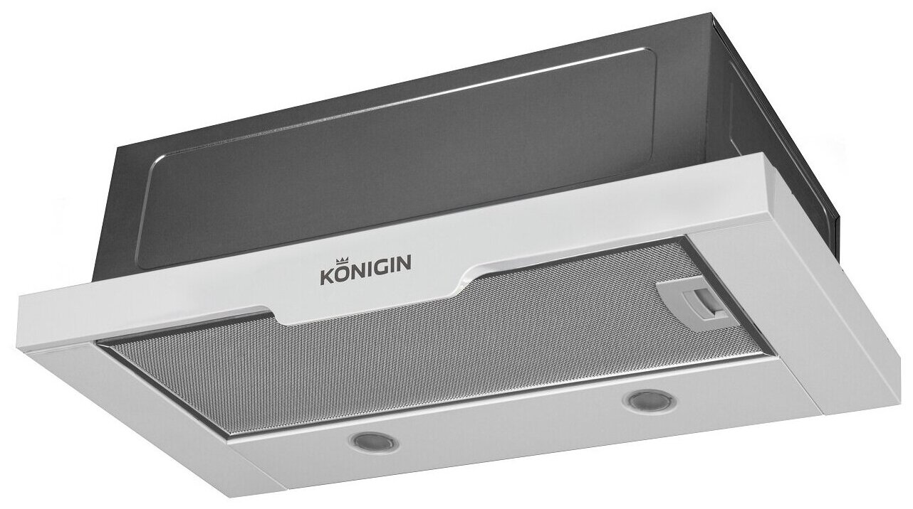 Кухонная вытяжка Konigin Rebus Smooth White 60 103035 с пластиковой глянцевой передней декоративной панелью.