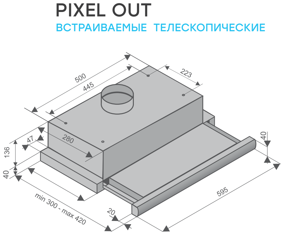 Кухонная вытяжка Konigin Pixel Out Inox 60 103042 с округлой декоративной панелью.