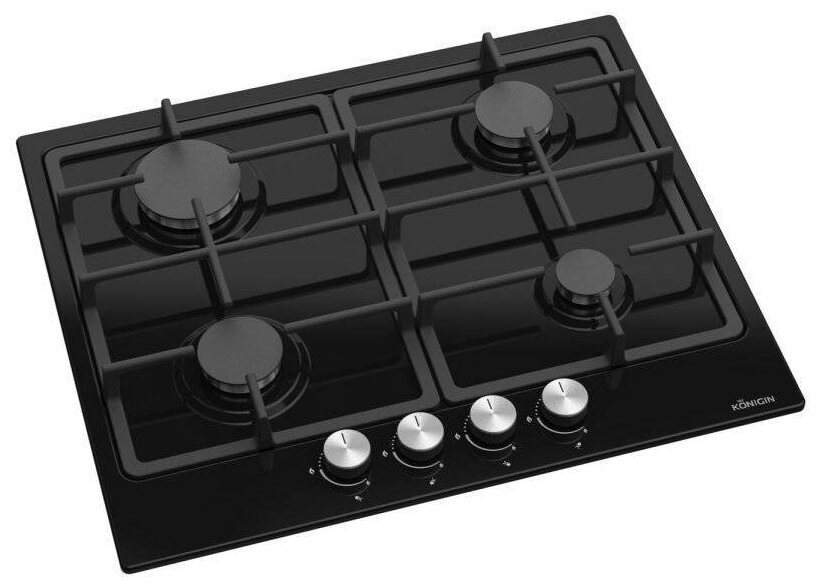 Встраиваемая газовая варочная панель Konigin Spark 604. Эмалированная сталь. Турецкие горелки REMA, изготовлены на немецком роботизированном оборудовании. Чугунные решетки высокого качества исполнения с накладками для защиты поверхности от царапин. Тяжелые цельнометаллические ручки с отделкой термостойким пластиком. Автоматический электроподжиг. Газ-контроль на всех конфорках.