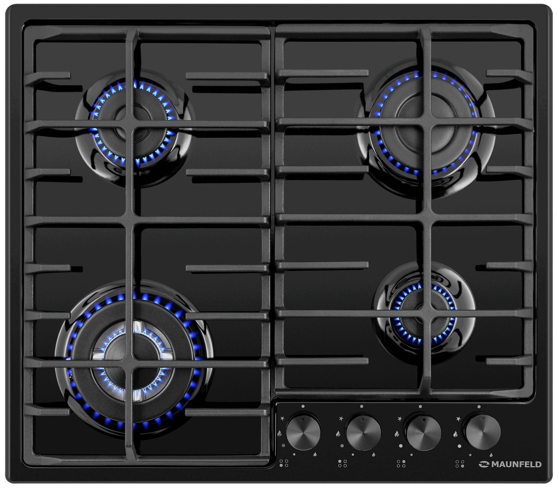 Управление интенсивностью нагрева и активация конфорок осуществляются с помощью механических поворотных переключателей, в которых имеется электроподжиг. Дополнительные форсунки предоставляют возможность адаптации варочной поверхности к природному или сжиженному газу. А система газ-контроля гарантирует высокий уровень безопасности в эксплуатации MAUNFELD EGHE.64.63CB2/G.