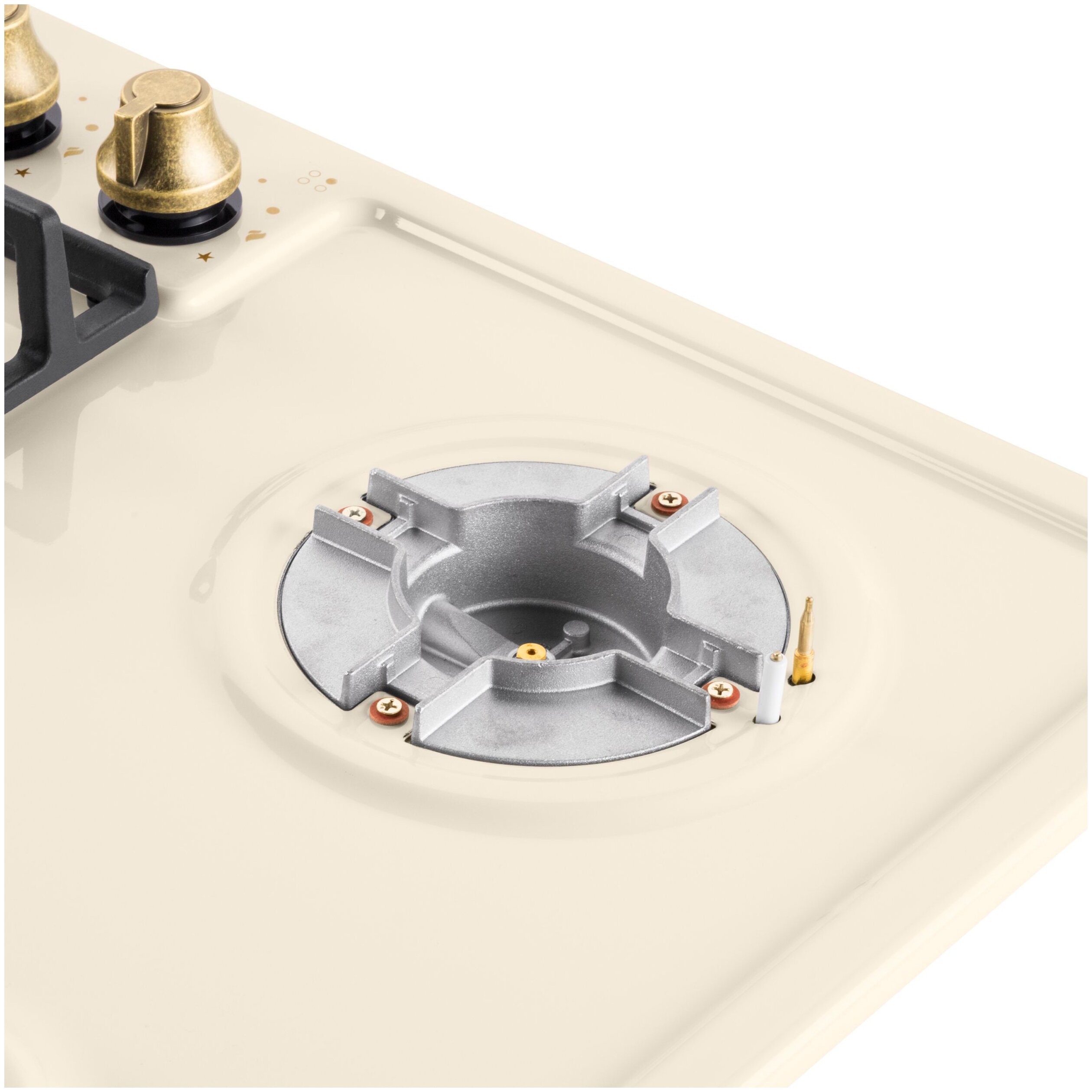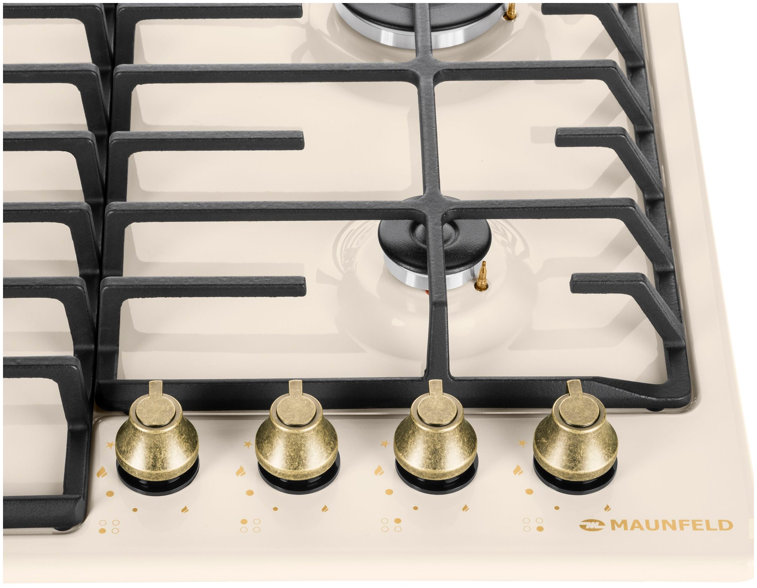 Защитой панели из эмалированной стали на MAUNFELD EGHE.64.63CBG.R/G служат чугунные решетки. Их дизайн предусматривает плотное прилегание друг у другу, в результате чего создается единая зона, по которой вы можете с легкостью перемещать посуду, не приподнимая ее. Над всеми конфорками решетки создают крестообразное соединение, что обусловливает устойчивость посуды.