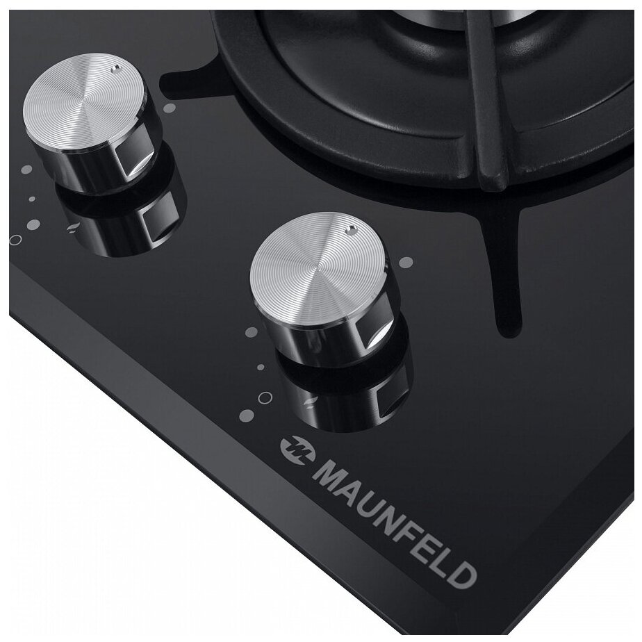 Газовая варочная поверхность MAUNFELD EGHG.32.1CB/G оборудована системой газ-контроля конфорок, которая прекращает подачу газа в том случае, если пламя неожиданно погасло. В каждой поворотной ручке предусмотрен электроподжиг: он поджигает пламя конфорки при помощи электрической искры. В комплекте есть дополнительные форсунки. Габариты для встраивания этой домашней помощницы - 26x48.5 см (ширина, высота и глубина соответственно).