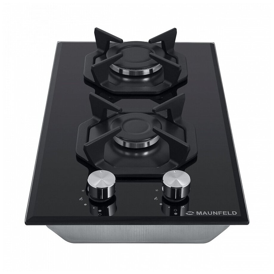 Газовая варочная поверхность MAUNFELD EGHG.32.2CB/G представлена в элегантном черном дизайне «Домино». Панель из закаленного стекла эффектно выглядит, не поддается деформациям и легко очищается от пищевых загрязнений. Система оснащена двумя конфорками с прочными чугунными решетками, работающими на газу.