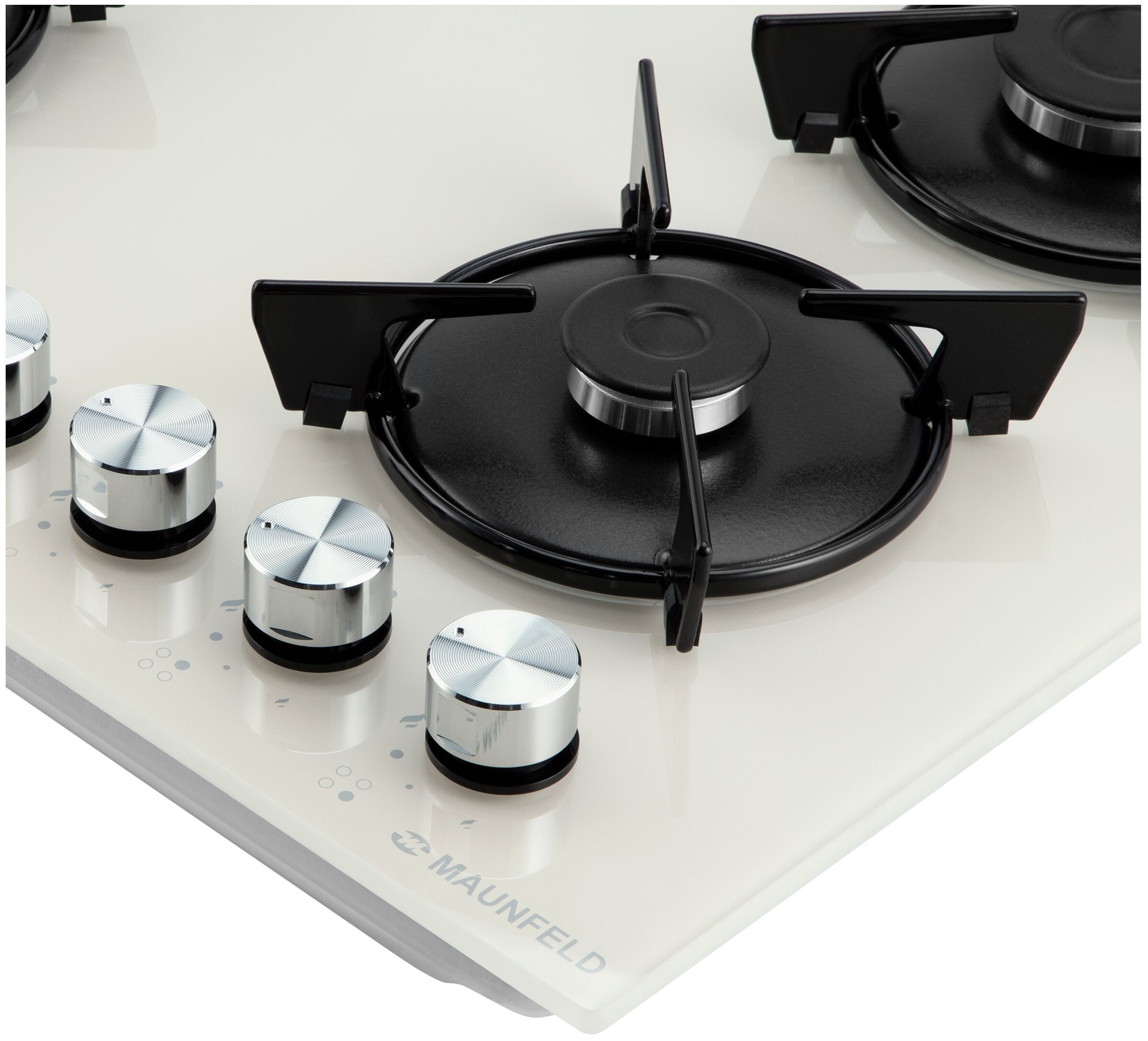 Газовая варочная поверхность MAUNFELD EGHG.64.13STS-EBG с 4-мя конфорками станет стильной техникой и надежной помощницей в повседневном приготовлении. Данная модель оборудована панелью из высокопрочного закаленного стекла с гладкой практичной поверхностью и устойчивыми решетками из долговечной эмалированной стали. Одна из конфорок оснащена технологией двойного ряда пламени, существенно ускоряющей процесс приготовления и нагрева. В механических поворотных переключателях реализована технология электроподжига конфорок, которая исключает использование средств розжига пламени. Система газ-контроля гарантирует высокий уровень безопасности в эксплуатации MAUNFELD EGHG.64.13STS-EBG. В комплекте предусмотрены дополнительные жиклеры для адаптации под баллонный газ.