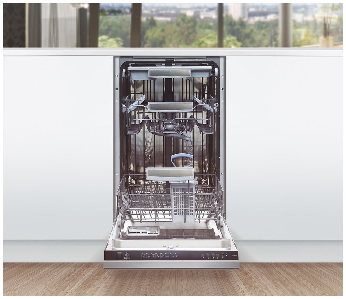 Встраиваемая посудомоечная машина Jacky's JD SB4201 – это незаменимое в хозяйстве устройство. Оно расходует не более 9 л воды для очистки 10 комплектов столовых и кухонных приборов. Модель имеет 8 программ работы. Модель оснащена дисплеем, таймером отсрочки запуска. Дополнительным плюсом станет система защиты от протечек и характерный звуковой сигнал окончания работы. Турбосушка – гарант того, что посуду вы вытащите из устройства сухой.