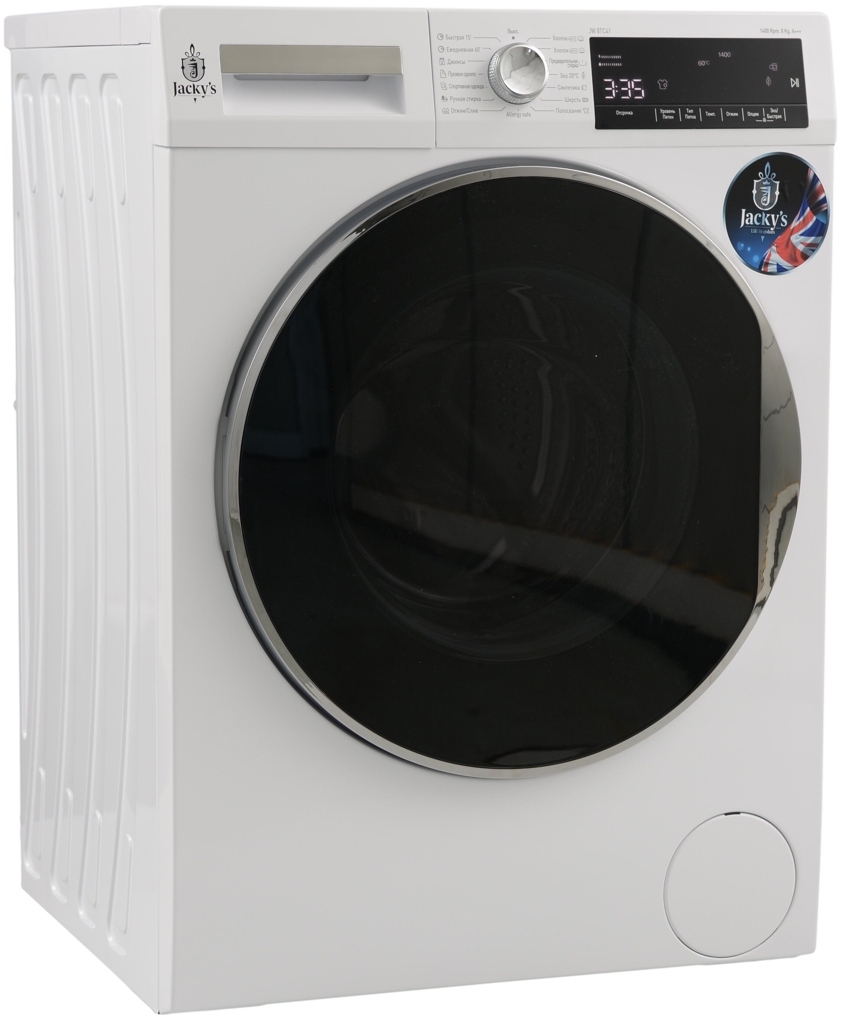 Панель управления с LED-дисплеем, кнопками и поворотным переключателем гарантирует простой выбор необходимых параметров стирки. Для защиты от случайного изменения настроек имеется функция блокировки панели управления. С помощью функции отложенного старта позволяется устанавливать определенное время запуска стирки. Звуковой сигнал оповещает об окончании стирки. Благодаря классу энергоэффективности А+++ стиральная машина отличается экономичным потреблением электрической энергии. Инверторный двигатель BLDC рассчитан на стабильную и тихую работу в течение длительного времени. Технологии защиты от повышенного пенообразования и протечек гарантируют безопасность эксплуатации стиральной машины Jacky's JW 8TC41.