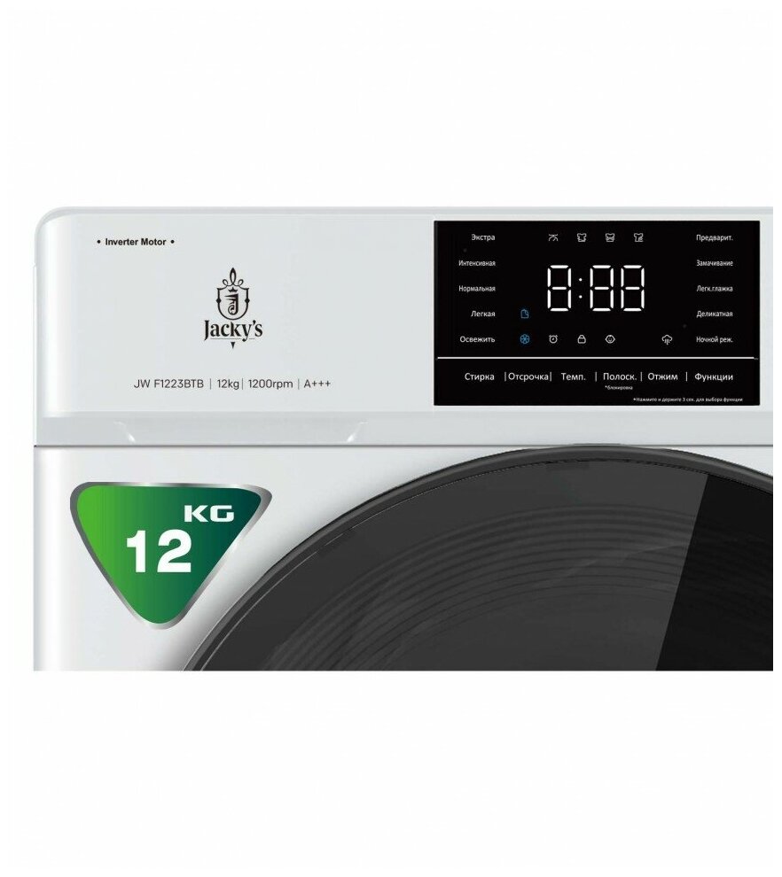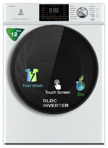 Стиральная машина JW F1223BTB на 12 кг и со скоростью отжима белья 1000 об/мин. Класс энергопотребления А++ поможет сэкономить энергии при стирке. Стиральная машина оснащена универсальным двигателем.