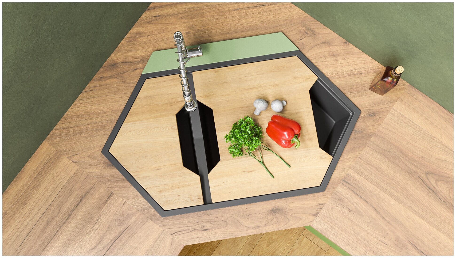 Разделочная доска KitKraken Creek а дуб DRY 900MA, созданная по индивидуальному лекалу мойки, сочетает в себе высокое качество и европейский дизайн. Выполнена из прочного материала - натурального дуба, имеет защиту от воздействия влаги, что обеспечивает долгий срок службы. Удобство использования модели состоит в том, что разделочная доска просто устанавливается поверх мойки в предусмотренный для нее паз, тем самым продолжая рабочую зону и усиливая интерьер кухни. Доска имеет вместительную рабочую поверхность и индивидуальный дизайн.