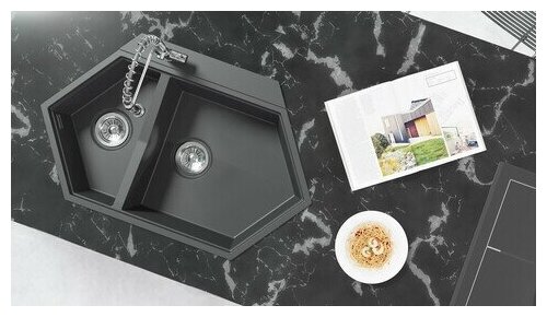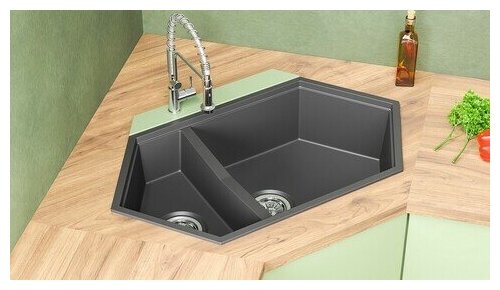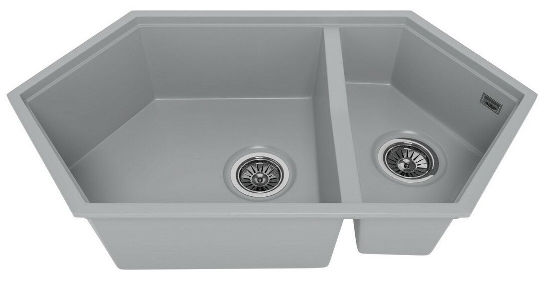 KitKraken Creek Grey (цвет: серый) - трапециевидная кухонная мойка для установки в прямой или угловой шкаф. Имеет увеличенную основную чашу и вместительную дополнительную, что позволит разместить посуду и продукты, осуществлять заготовки. Чаши имеют запатентованную пятиугольную форму, что делает раковину не только уникальной, но и позволит вместить сковородку вместе с ручкой. В мойке существенно облегчен слив воды, благодаря смещенному выпуску в угол чаши. Это позволяет использовать площадь чаши максимально и не беспокоиться о накоплении воды.