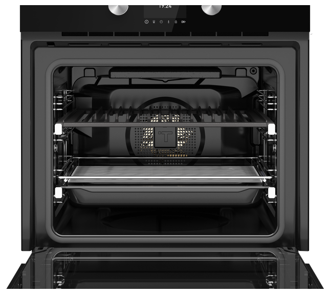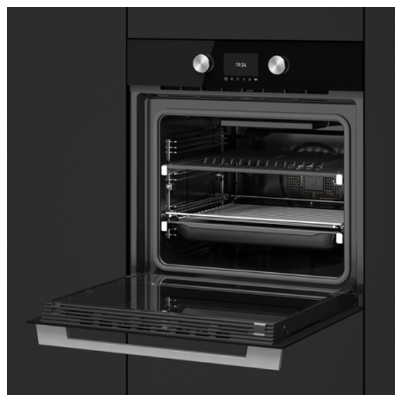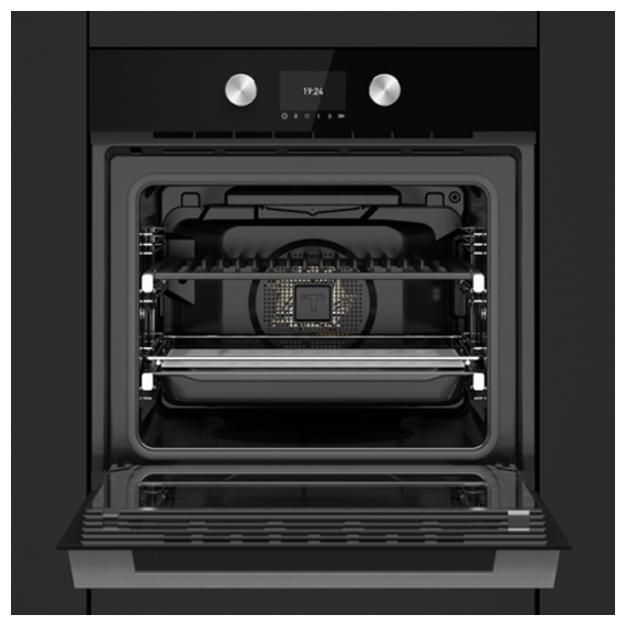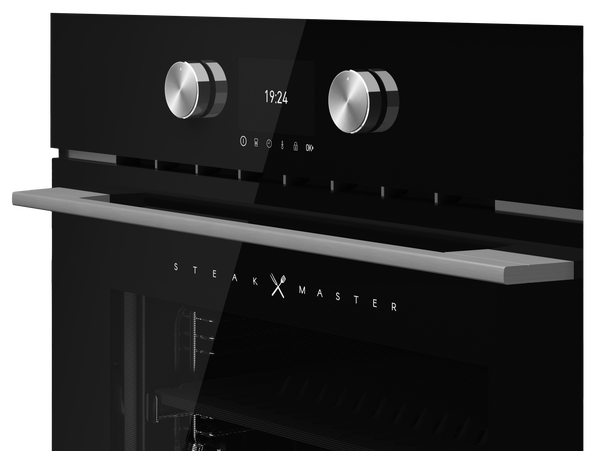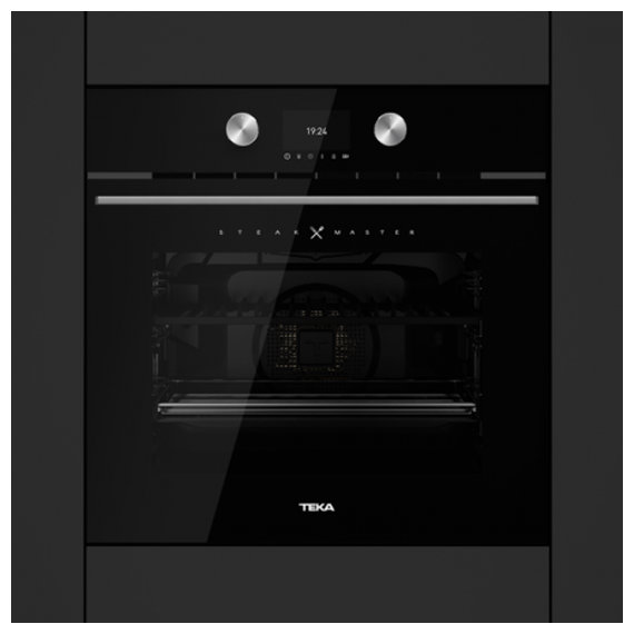 Духовой шкаф Teka STEAKMASTER NIGHT RIVER BLACK черного цвета и в современном дизайне. Технология «SteakGrill» позволит получить золотистую корочку за секунды. Сенсорным управлением легко настраивать режим работы одним прикосновением. Двадцать авторецептов мяса, приготовление произойдет за несколько минут.