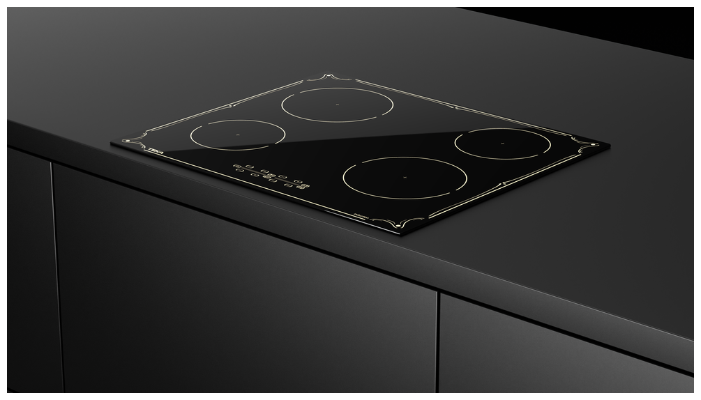 Варочная панель Teka IBR 64040 TTC BLACK в цвете черная стеклокерамика с шелкографией «Матовое золото» прекрасно впишется в классический дизайн интерьера. Блокировка управления нужна, чтобы случайно не переключить мощность нагревания. Индикаторы остаточного тепла показывают, что конфорки еще горячие.