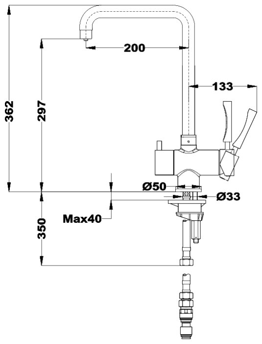 | Тип излива | >гибкий, для фильтрованной воды |