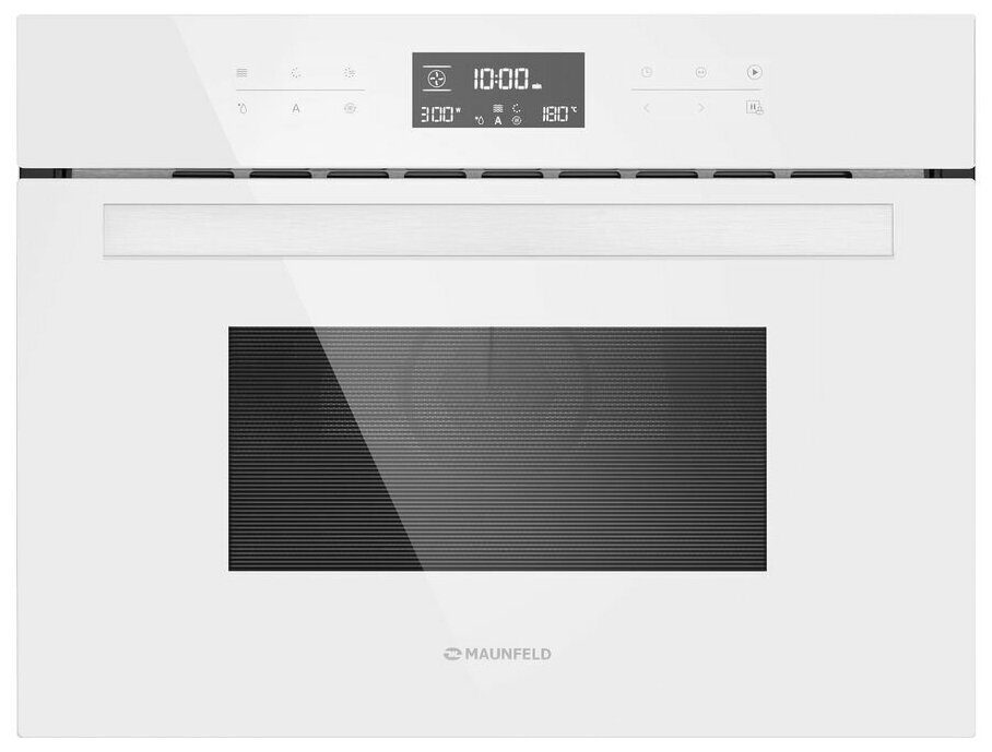 Maunfeld MCMO.44.9GW — электрический духовой шкаф, выполненный в белом цвете. Элегантный дизайн дополняет серебристая фурнитура и алюминиевая ручка. Модель станет красивым дополнением кухонь в классическом стиле или интерьера hi-tech. Не хуже внешнего вида продуман функционал. Устройство оснащено пятью режимами работы для создания разнообразных кулинарных шедевров. Для равномерного и качественного приготовления блюд доступна функция конвекции, представляющая собой постоянную циркуляцию горячего воздуха внутри камеры. Гриль даст возможность приготовить мясо, птицу или овощи с вкусной хрустящей корочкой. Чтобы защитить кухонную мебель от повреждения, в модели предусмотрена специальная система охлаждения боковых стенок. Также пристствует функция двойного нагрева (сверху и снизу) с конвекцией, благодаря чему скорость приготовления увеличится, а само блюдо равномерно подрумянится снаружи. Режим «Размораживание» бережно освобождает заготовки ото льда. Духовой шкаф объемом 44 л относится к классу энергоэффективности А и имеет простое механическое управление, осуществляющееся с помощью поворотных регуляторов. Присутствие пользователя около устройства не требуется — достаточно установить таймер, который по истечении определенного времени автоматически прекратит процесс. Безопасность гарантирует наличие блокировки от детей — она исключит вероятность непреднамеренной активации работы или изменения исходных настроек.