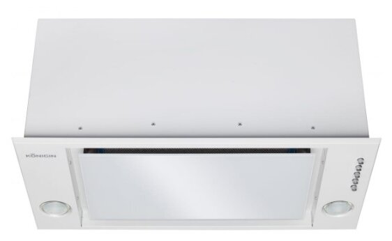 Кухонная вытяжка Konigin Checkbox White 60 102042 с мощным итальянским мотором, практически бесшумным на первой скорости. Декоративный стеклянный люк скрывает алюминиевый, жироулавливающий фильтр. Полностью встраиваемая кухонная вытяжка устанавливается внутрь верхнего кухонного шкафа. Видимая часть вытяжки расположена над варочной панелью, не меняя внешний вид и стиль кухонного гарнитура.