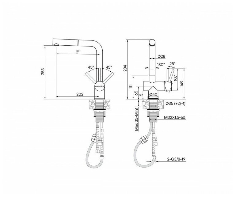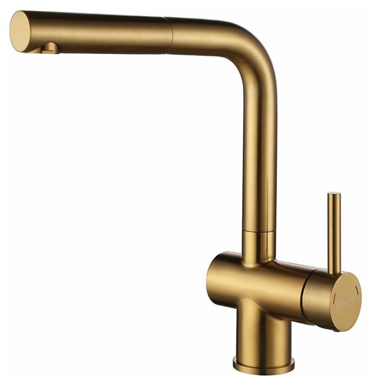 Paulmark Dosse Do214418-BG с выдвижным душем. Материал корпуса - нержавеющая сталь. Долговечный керамический картридж диаметром 35 мм. Простой монтаж, стандартное подключение. Индивидуальная сберегающая упаковка с ложементом из поролона.