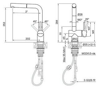 Высота излива>253 мм