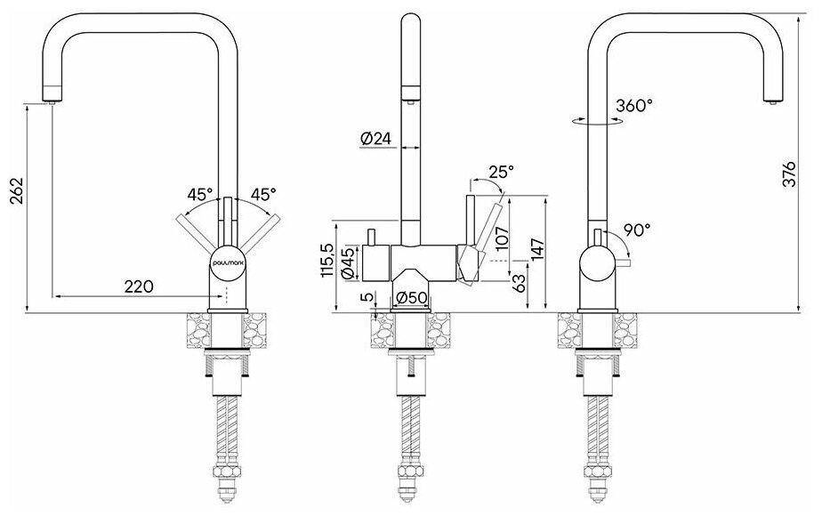 Paulmark Wetter We213030-GM выполнен из нержавеющей стали, комбинированный с возможностью подключения фильтрованной и водопроводной воды. Долговечный керамический картридж диаметром 35 мм. Простой монтаж, стандартное подключение.