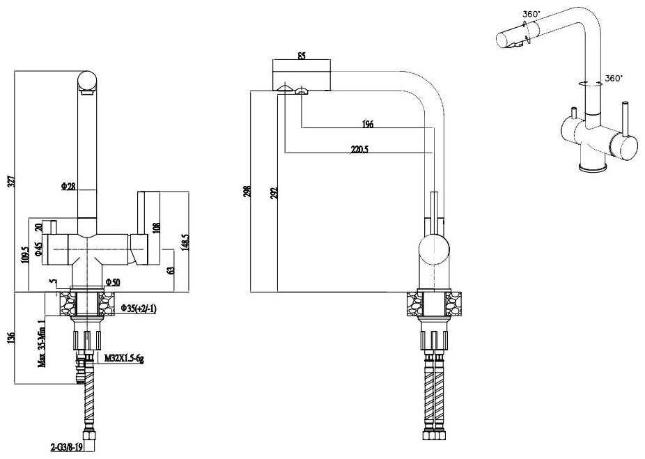 Высота излива>298 мм