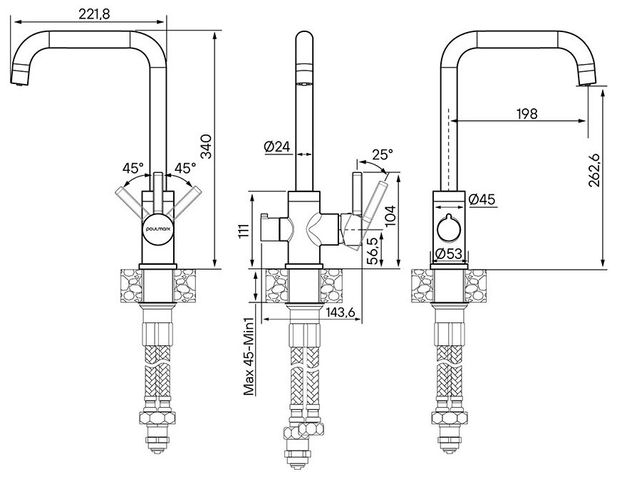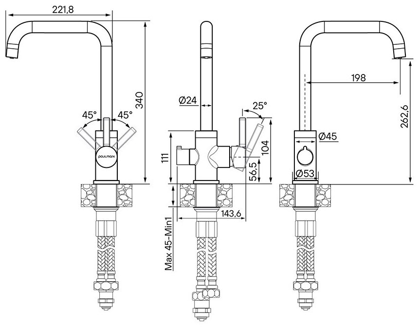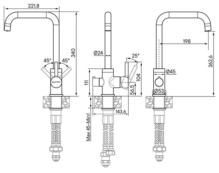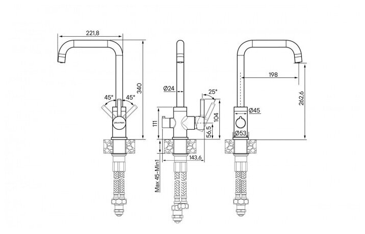 Высокий смеситель для кухни Paulmark Logas Lo213021-401TB однорычажный, с поворотным изливом, с возможностью подключения фильтра питьевой воды. Фильтрованная вода подается через отдельные трубку и аэратор. Латунь высокого качества. Многослойное, стойкое к истиранию матовое покрытие. Долговечный керамический картридж. Съемный пластиковый аэратор. Простой монтаж.