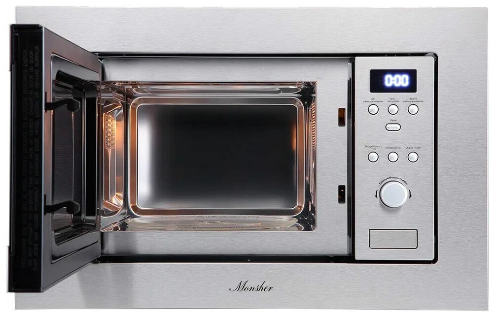 Встраиваемая микроволновая печь Monsher MMH 200 Xможет быть установлена в нише кухонного шкафа или мебельной колонны, что способствует комфортной эксплуатации. При изготовлении устройства применяются материалы высокого качества. Внутреннее покрытие из нержавеющей стали устойчиво к появлению царапин и ржавчины. Благодаря этому модель не теряет потребительских свойств в течение длительного времени. Объем камеры составляет 17 л, что оптимально для использования формы для запекания или большого блюда. Для удаления жира и загрязнений применяют мягкую салфетку с неабразивным средством.