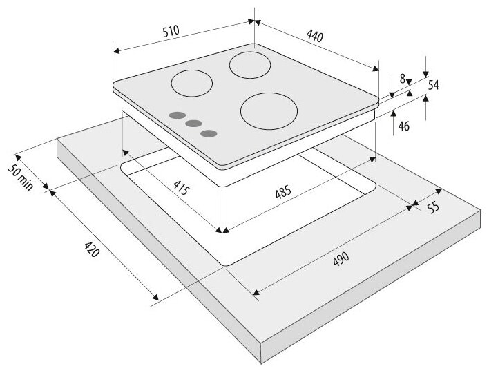 | Размеры конфорок | >Мощность конфорок: Дальняя левая: 1,7 кВт; Ближняя левая: 1 кВт; Центральная правая, кВт: 3,8 (WOK) кВт |