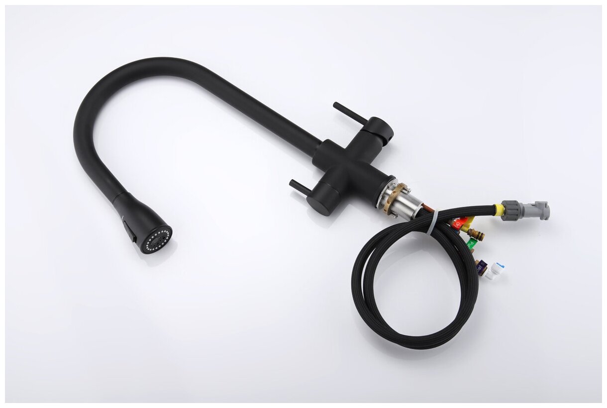Смеситель выполнен из высококачественных материалов, что обеспечивает долговечность и надежность его использования. Стильный дизайн смесителя подчеркивает эстетическую составляющую кухни, делая ее более привлекательной и современной. Все эти функции делают премиальный кухонный смеситель с выдвижной лейкой идеальным решением для тех, кто ищет комфорт, функциональность и стильный дизайн в своей кухне. Он станет незаменимым помощником в выполнении различных задач, связанных с использованием воды, и придаст вашей кухне уютный и современный вид.