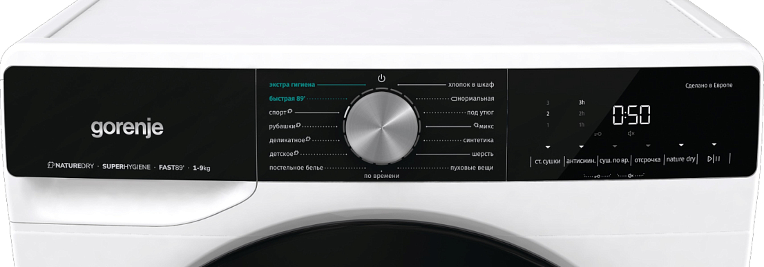 | Основные программы | Хлопок (в шкаф,нормальная), Рубашки, Шерсть, Микс (в шкаф,под утюг), Спорт, Детская одежда, Деликатное / Нижнее белье, Сушка больших вещей / Покрывала, Сушка по времени, Настройка степени сушки |