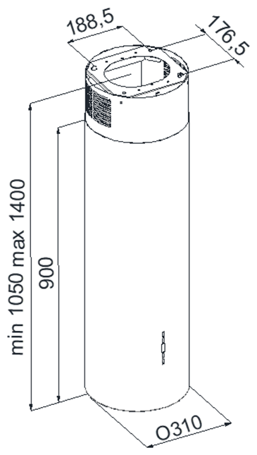 Вытяжка выполнена в форме цилиндра. Геометрические формы повсеместно используется в современных дизайнерских проектах, они ассоциируются с простотой и лаконичностью, привносят в помещение гармонию и стиль. Стильное сочетание стали и блеска закаленного стекла создают ощущение легкости прочной конструкции. Декоративный стеклянный люк скрывает алюминиевый, жироулавливающий фильтр, придавая завершенность композиции