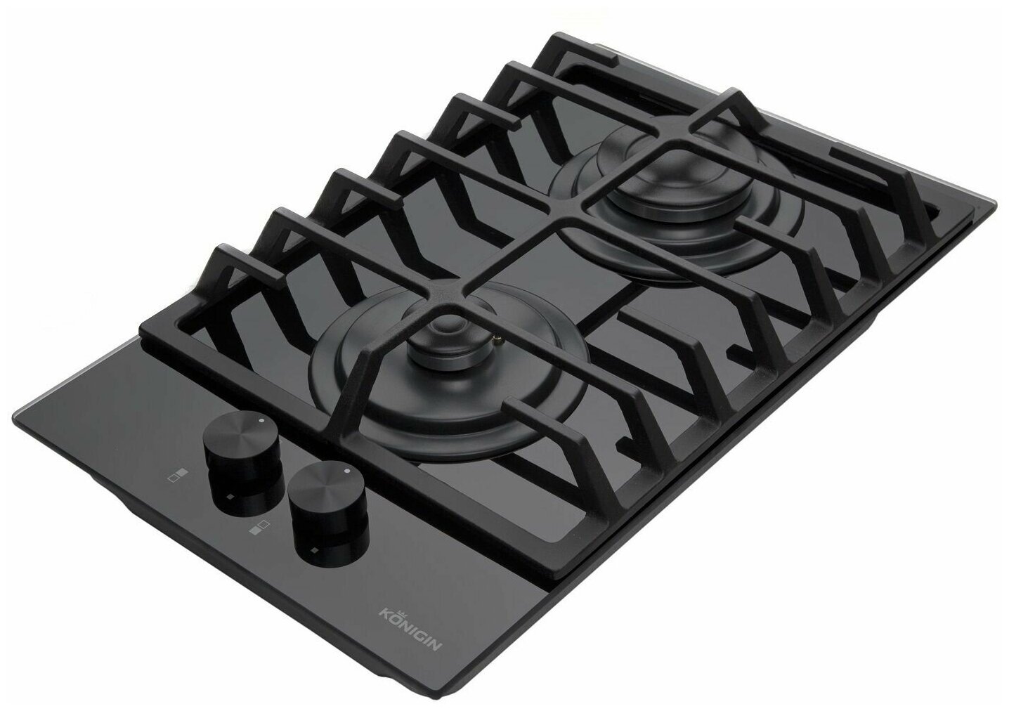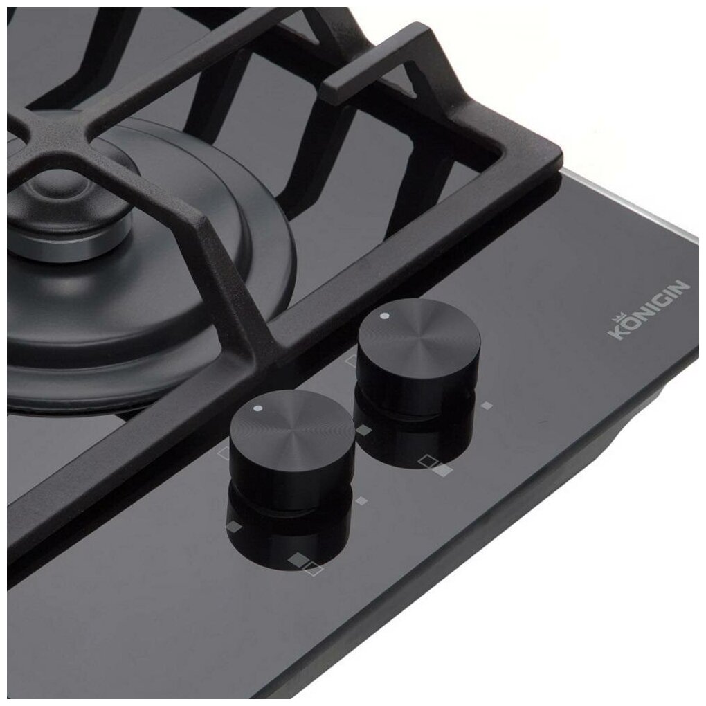 Черное закаленное стекло + черные металлические ручки управления Поверхность выполнена из жаростойкого закаленного стекла толщиной 6 мм, которое обладает превосходными эксплуатационными характеристиками. Этот материал характеризуется высокой прочностью, износостойкостью, стойкостью к перепадам температур и простотой в уходе. Фронтальный край стекла имеет декоративным скос (фацет). Массивные чугунные решетки высокого качества исполнения. Удобная и безопасная система фиксации решеток на стекле.