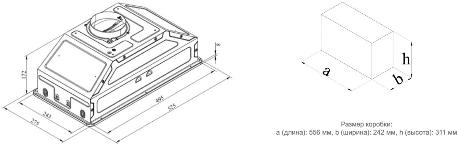 | Диаметр патрубка воздуховода | >120 мм |
