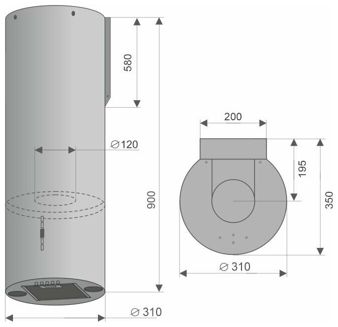 Вытяжка выполнена в форме цилиндра. Геометрические формы повсеместно используется в современных дизайнерских проектах, они ассоциируются с простотой и лаконичностью, привносят в помещение гармонию и стиль. Стильное сочетание стали и блеска закаленного стекла создают ощущение легкости прочной конструкции. Декоративный стеклянный люк скрывает алюминиевый, жироулавливающий фильтр, придавая завершенность композиции