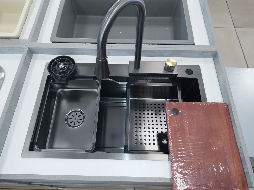 Комплектация : Смеситель для кухни с душем , разделочная доска , дозатор для моющего средства , 2 коландера.