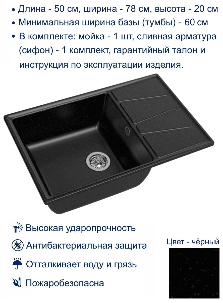 Врезная кухонная мойка GranFest Vertex GF-V-780L черный