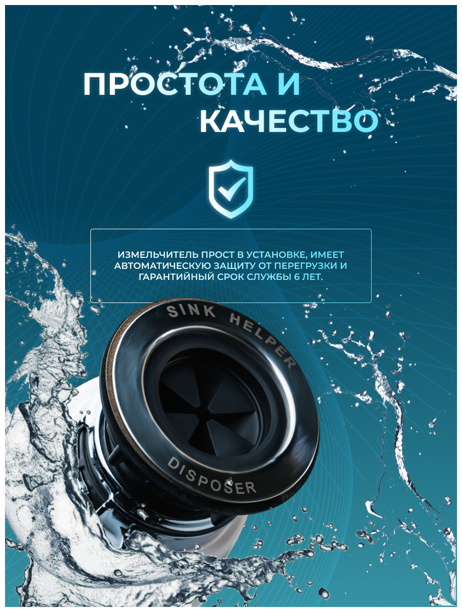 Гарантийный срок>6 лет, Гарантийный срок на кухонные измельчители SINK HЕLPER составляет 6 лет. Условия гарантийных обязательств определяются Законом РФ «О защите прав потребителей» № 2300-I от 07.02.1992 года.