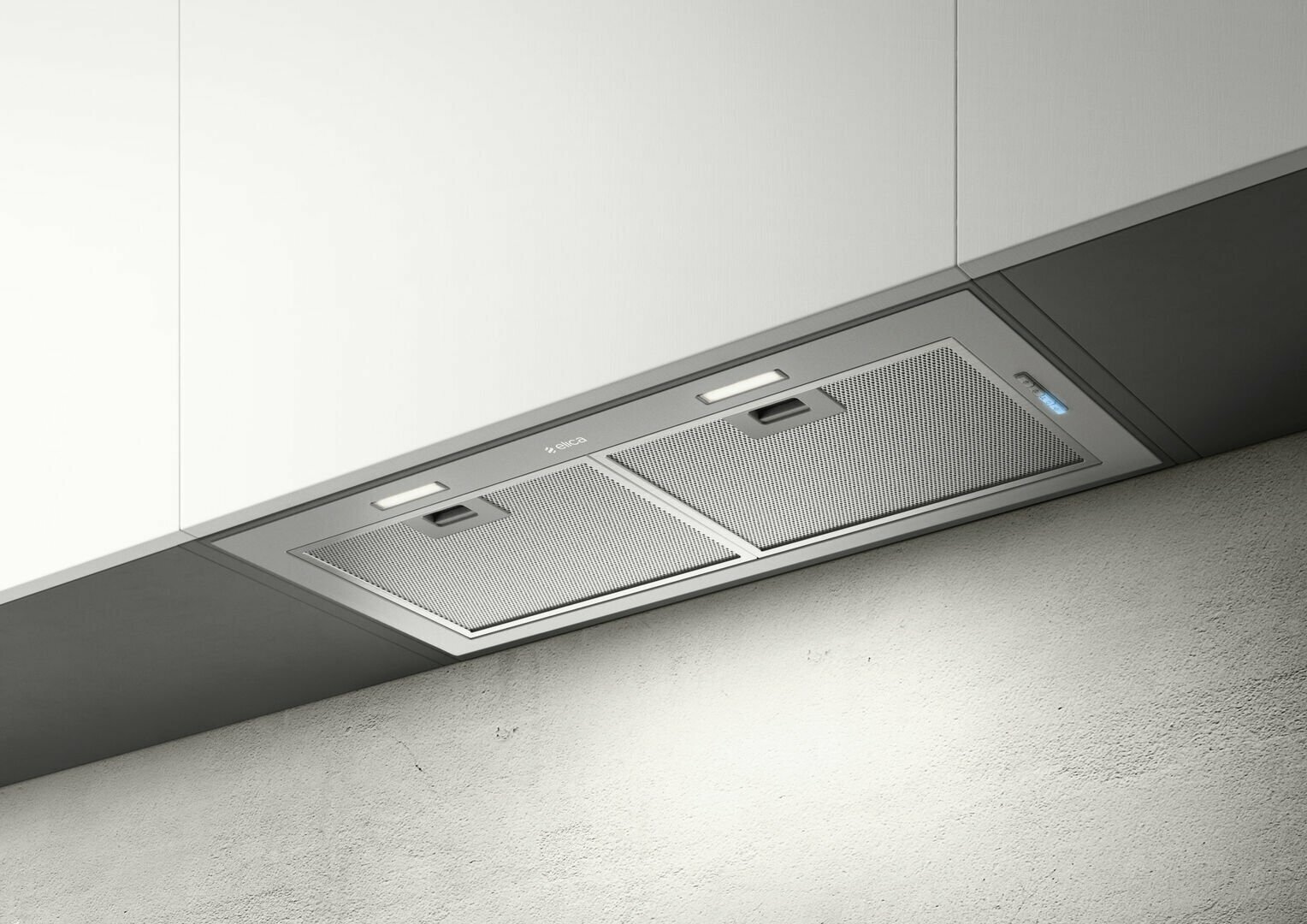 Кнопки позволяют выбрать оптимальный режим скорости для качественного удаления испарений из воздуха. При работе на максимальной мощности встраиваемая вытяжка Elica Fold GR/A/52 Gray создает уровень шума 65 дБ, что обеспечивает комфорт при эксплуатации. Удалять загрязнения с жироулавливающего элемента нужно раз в месяц вручную или в посудомоечной машине в режиме с низкой температурой. Протирать металлическую поверхность корпуса можно мягкой влажной салфеткой с использованием неагрессивного средства без содержания абразива.